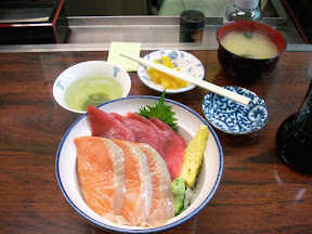Avant ça, à mon retour de Yokohama, je suis parti au Marché de Tsukiji mais c'était fini la crié des poissons... je reviendrais plus tard. En revanche j'en ai profité pour manger du poisson frais pêché ce matin (voir la photo du bol)